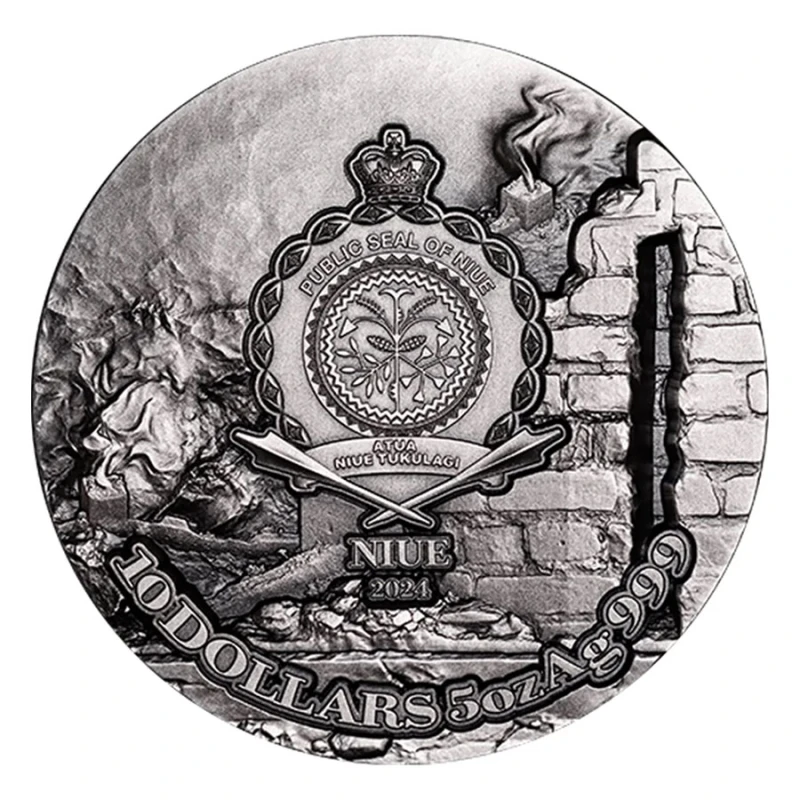 Silver coin Niue "Awakening of the Dragon and the Great Wall of China" 2024, 155.5 g of pure silver (0.999 proof)