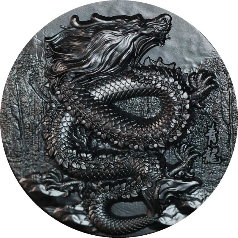 Chad silver coin "Azure Dragon. Obsidian Black" 2024, 155.5g of pure silver (0.999 proof)