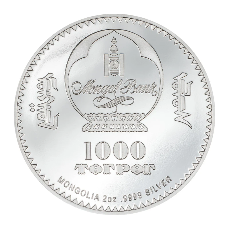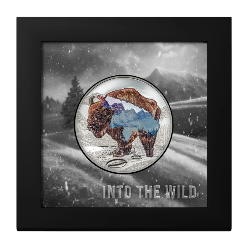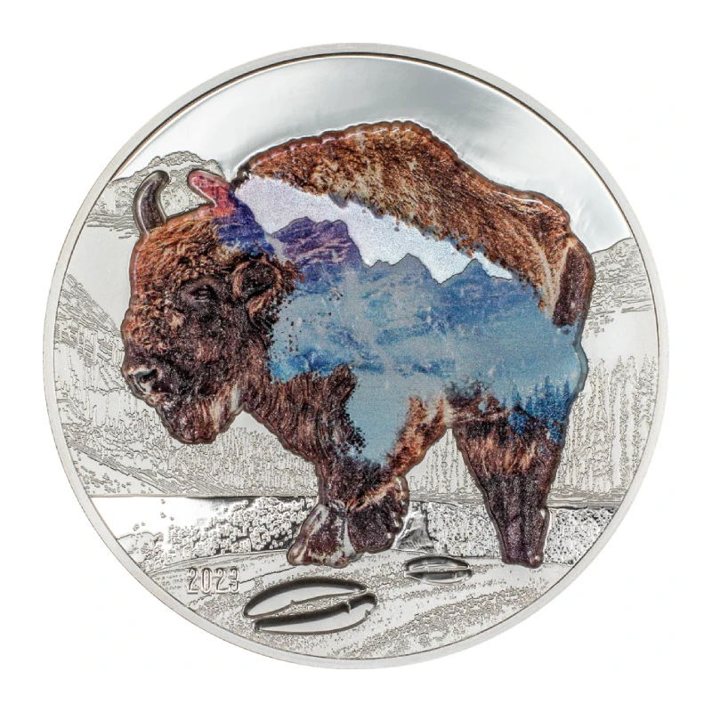 Silver coin of Mongolia "Bison" (proof, high relief, colored) 2023, 62.14 g. pure silver (0.9999 proof).