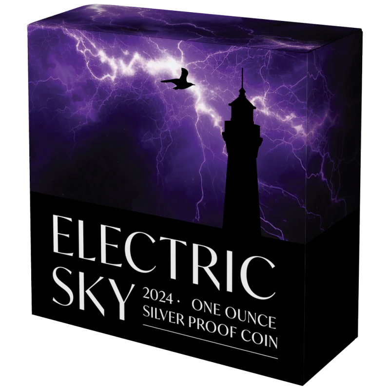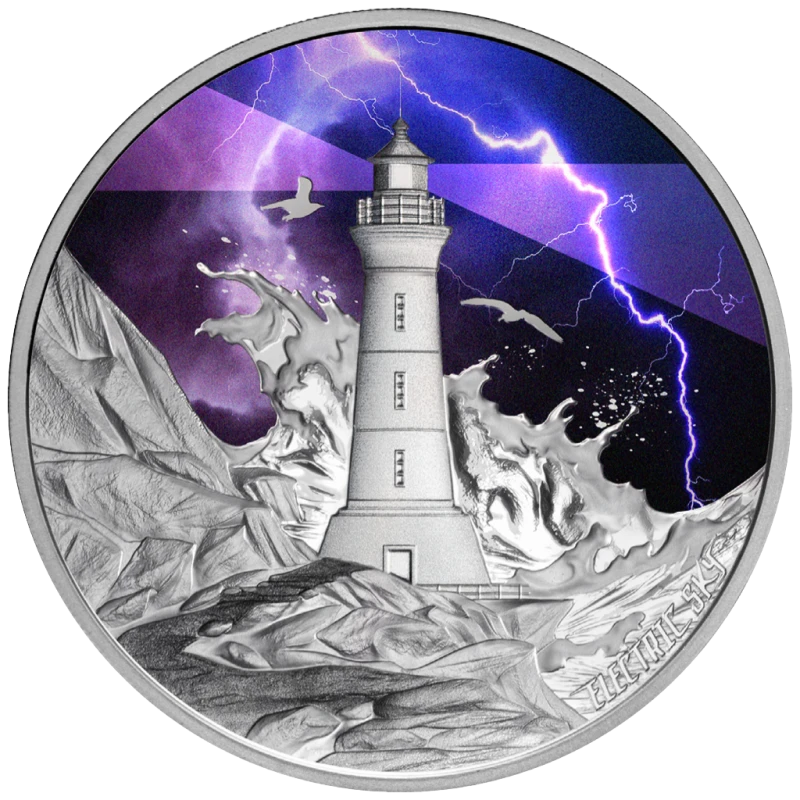 Niue Silver Coin "Electric Sky" (proof, colorized) 2024, 31.1 g. pure silver (0.9999 proof).
