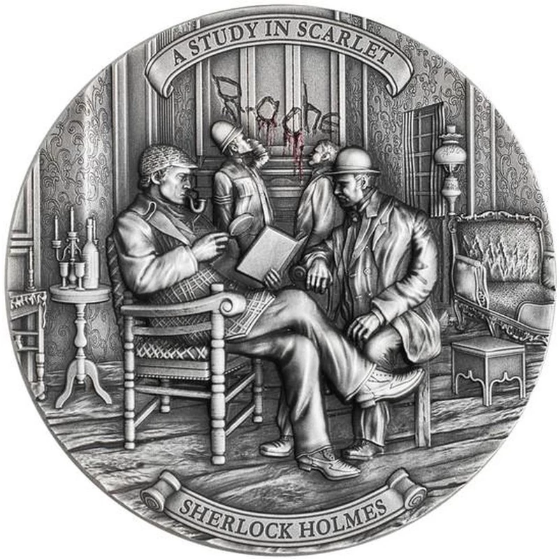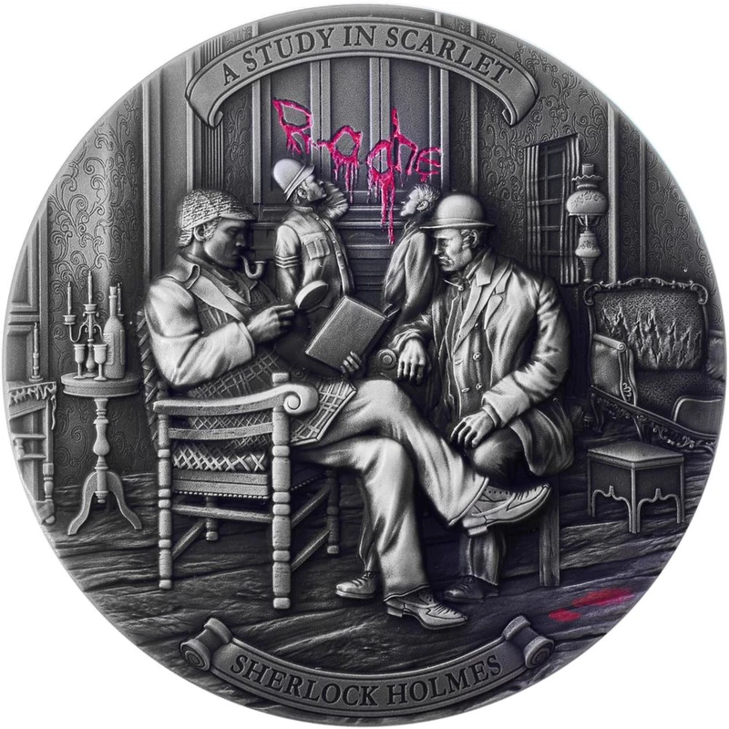 Silver coin Niue "Sherlock Holmes. Etude in Crimson" 2024g., 62.2 g. pure silver (0.999 proof)