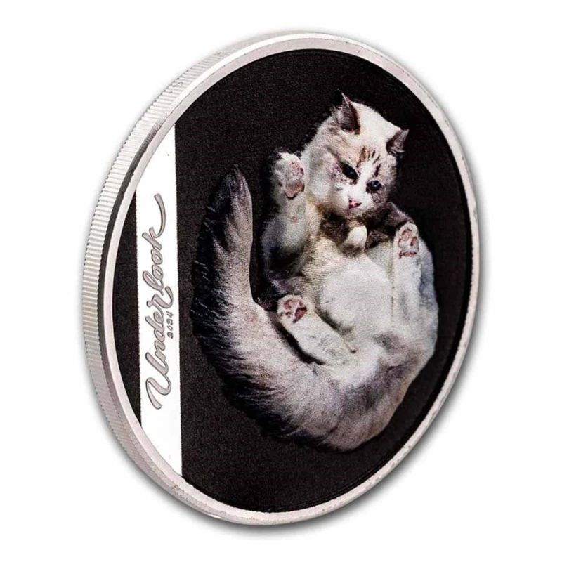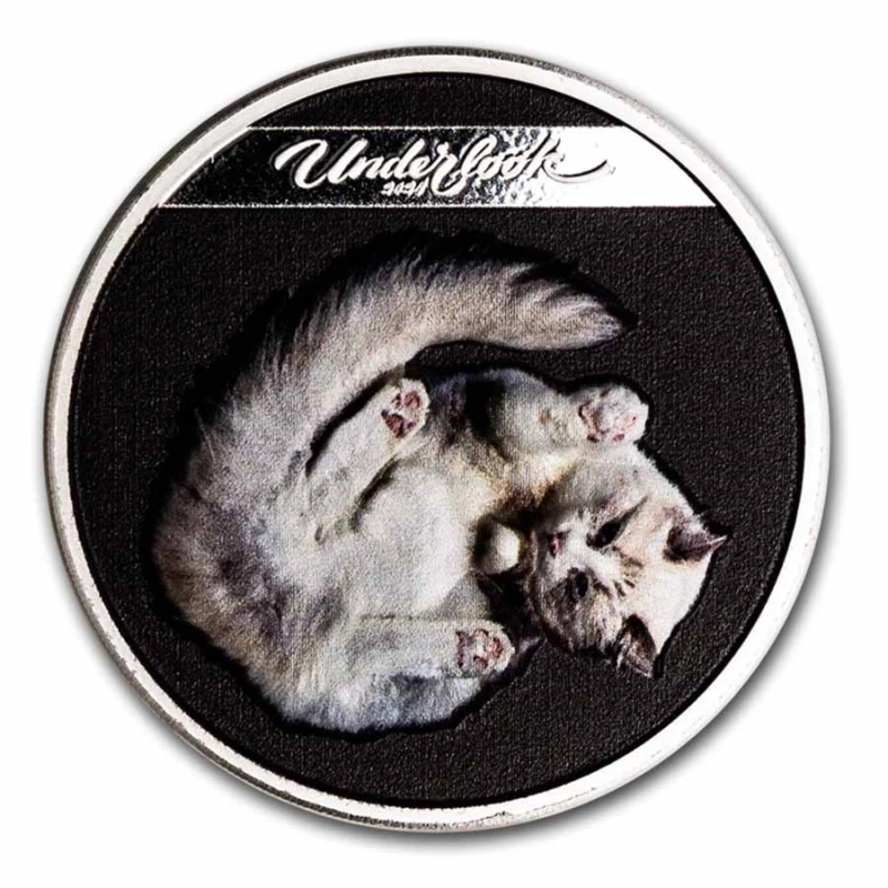 Cook Islands Silver Coin "View from Below - Cat" (proof, colorized) 2024, 31.1 g pure silver (0.9999 proof)
