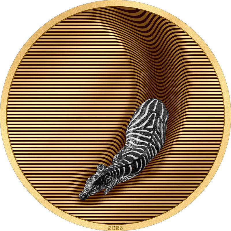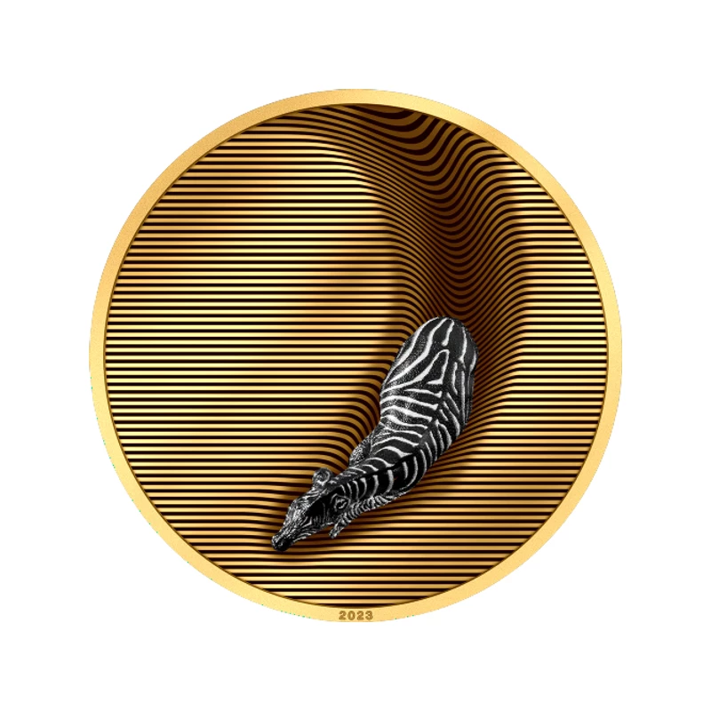 Silver coin Palau "Camouflage of nature. Zebra" (gilded, proof), 2023, 155.5g, pure silver (0.999 proof)