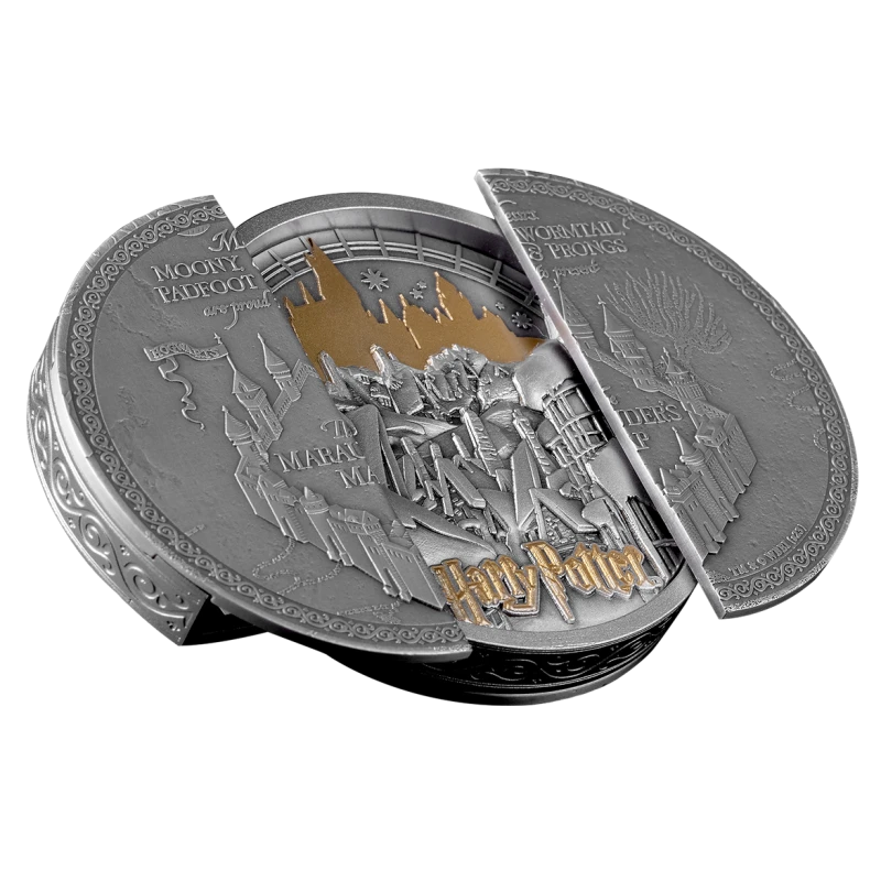 Samoa silver coin "Harry Potter. Map of the Marauders", (high relief) 2024, 155.5 g pure silver (0.999 proof)