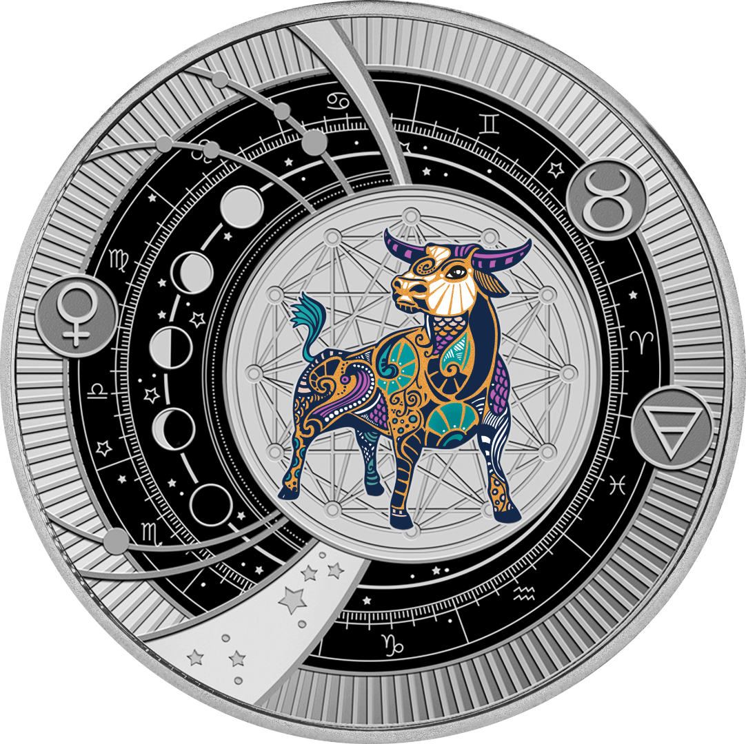 Diese elegante Silbermünze aus der Serie "Tierkreiszeichen" ist dem Stier gewidmet - einem Symbol für Standhaftigkeit, Loyalität und eine tiefe Verbundenheit mit der Natur. Die Rückseite zeigt einen majestätischen Stier, der von kosmischen und astrologischen Symbolen umgeben ist, darunter Mondphasen, das Zeichen der Venus und Tierkreiszeichen. Die in polierter Platte geprägte Münze zeichnet sich durch filigrane Details aus, die das harmonische und selbstbewusste Wesen des Stieres unterstreichen. Mit einem eleganten Anhängerring kann die Münze als Schmuckstück getragen werden und ihre Schönheit überall zur Schau stellen. Die Münze wird in einem Präsentationsetui mit Echtheitszertifikat geliefert und ist weltweit auf 599 Exemplare streng limitiert.