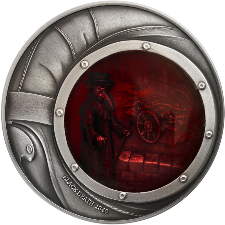 Niue Silbermünze "Schwarzer Tod - Die Pest. Menschliche Tragödien" 2023, 62,2 Gramm reines Silber (0,999 Proof)