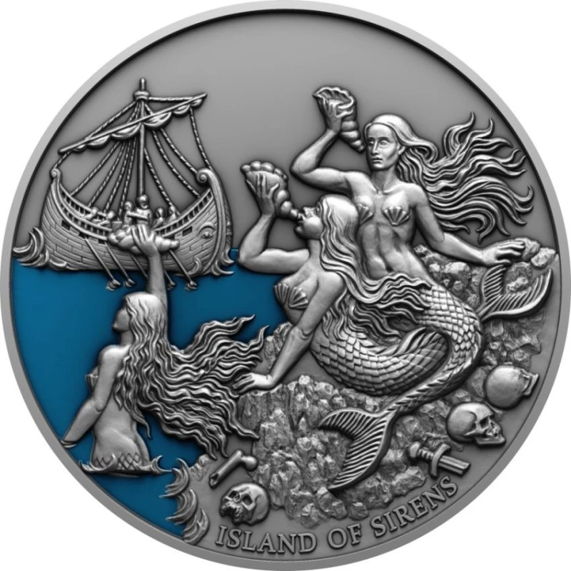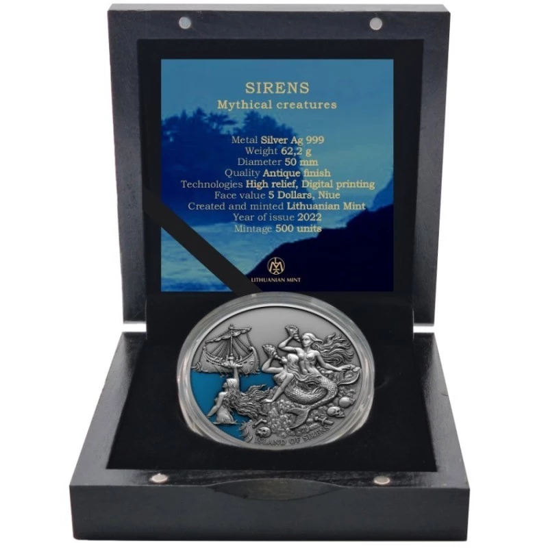 Silbermünze Niue "Mythische Kreaturen. Sirenen" 2022g, 62,2 Gramm reines Silber (0,999 Proof)