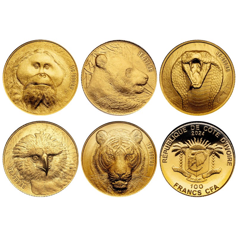Republik Côte d'Ivoire: Goldmünzen Tiere Asien 2024 Satz 5 g Sammlermünzen