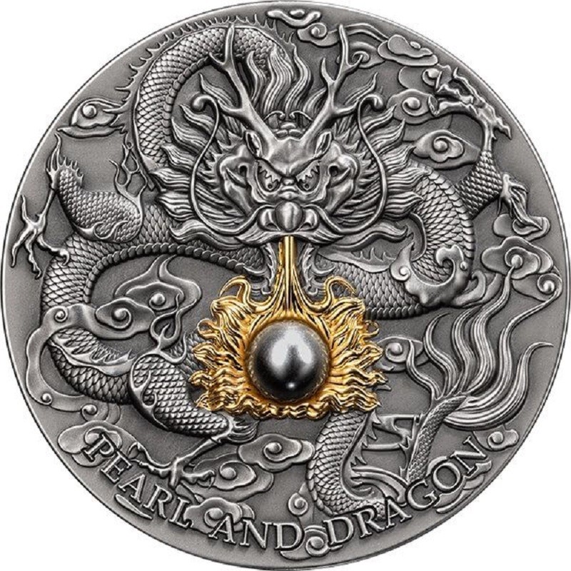 Diese bemerkenswerte 2-Unzen-Silbermünze ist dem Drachen gewidmet - dem am meisten verehrten und legendären Geschöpf der chinesischen Mythologie und Symbol für Macht, Weisheit und Glück. Die Münze weist eine antike Oberfläche mit beeindruckendem Hochrelief, Teilvergoldung und einem auffälligen schwarzen Perleneinsatz auf. Das Motiv zeigt einen chinesischen Drachen mit einer magischen Perle, während die selektive Vergoldung um die Perle herum den feurigen Atem des Drachens wiedergibt. Die Münze wird in einem Etui geliefert und von einem Echtheitszertifikat begleitet. Die Auflage ist auf nur 500 Stück begrenzt.