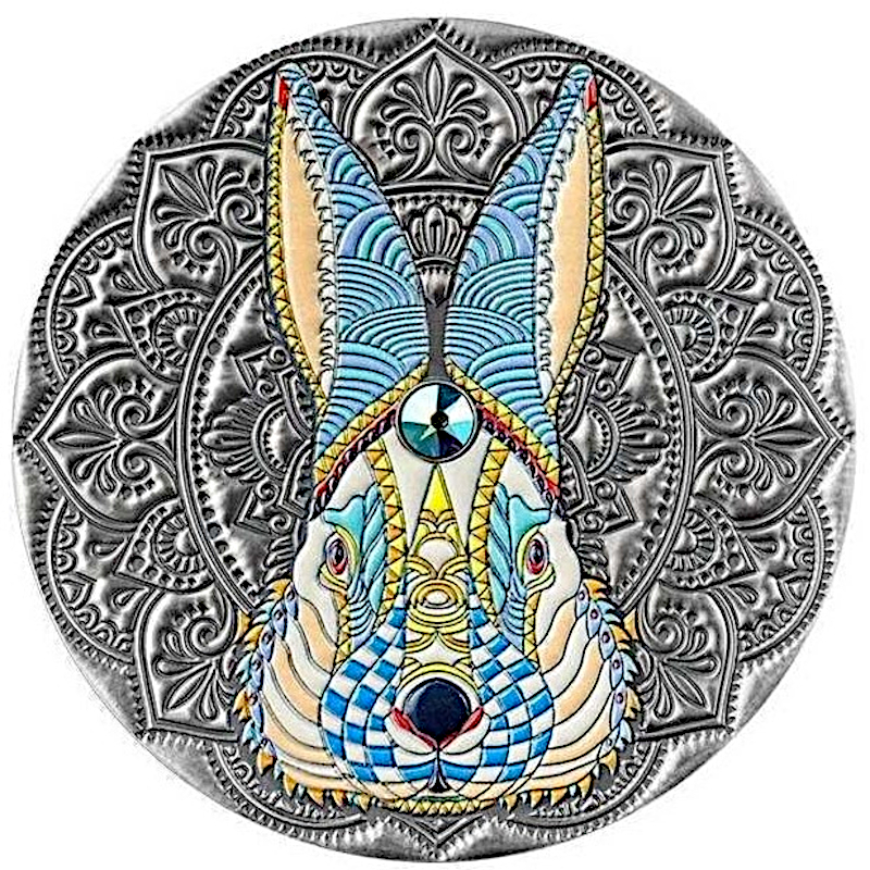 Niue: Silber-Sammlermünze Mandala Art. Jahr des Hasen 2023 (koloriert), 62,2 g reines Silber (0,999)