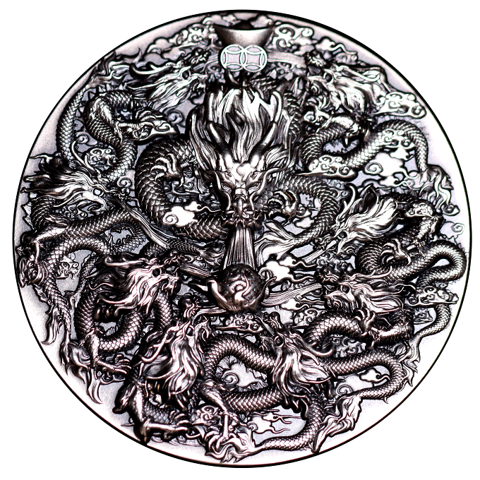 Chada Silbermünze "Neun Drachen mit Perle" 2024, 155,5g reines Silber (0,999 Proof)