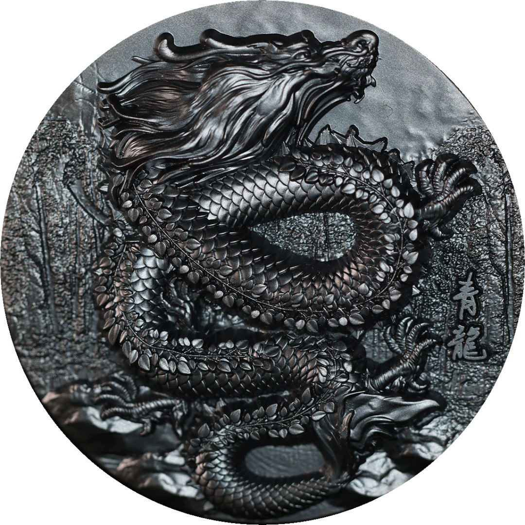 Chad Silbermünze "Azure Dragon. Obsidian Schwarz" 2024, 155,5g reines Silber (0,999 Proof)