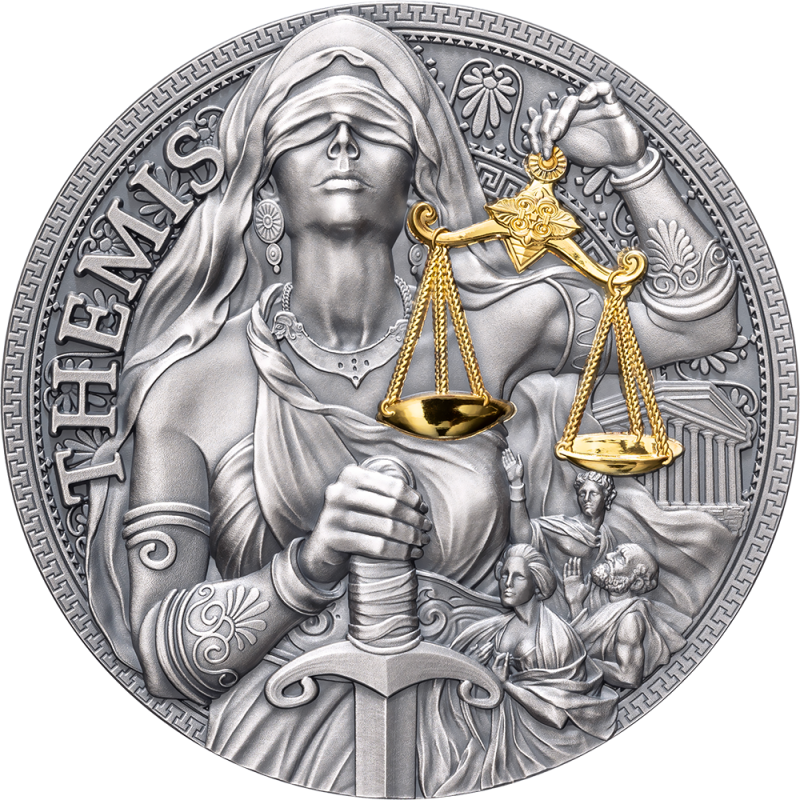 Kamerun Silbermünze "Große griechische Mythologie. Themis" 2023g., 62,14 g. reines Silber (Prüfung 0,999)