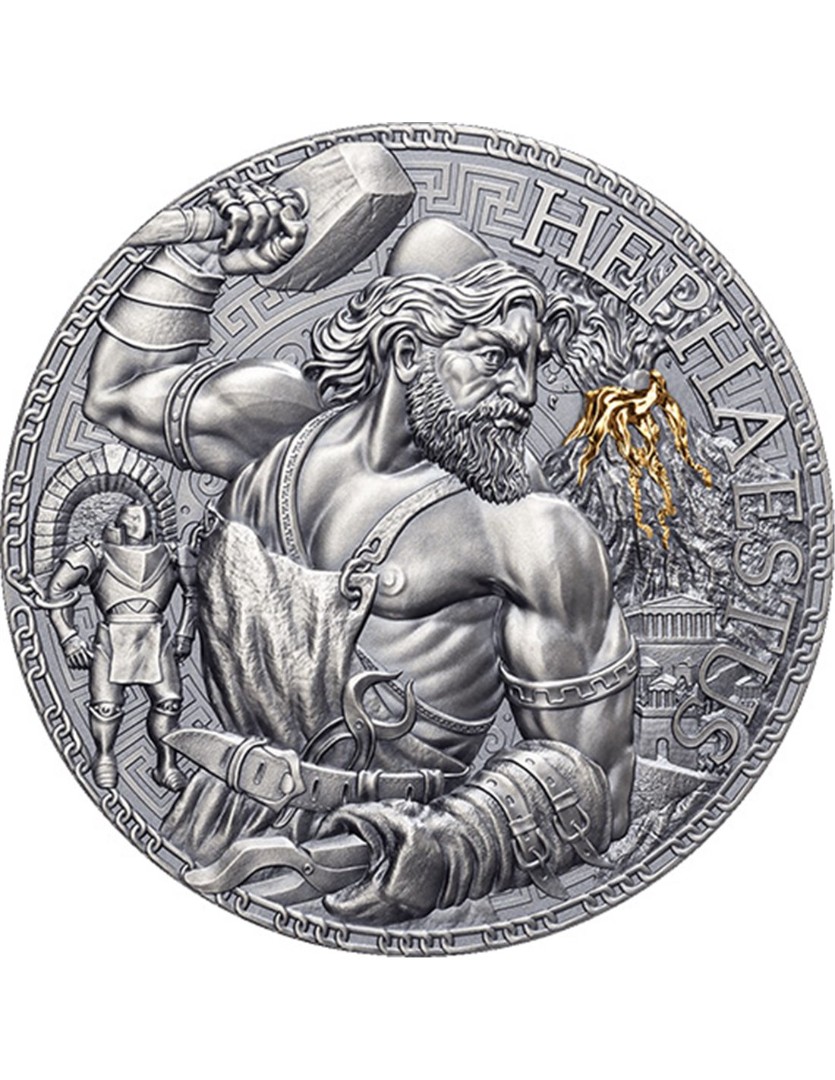 Die einzigartige Silbermünze aus Kamerun zeigt Hephaistos, den mächtigen Schmied, der alles kann