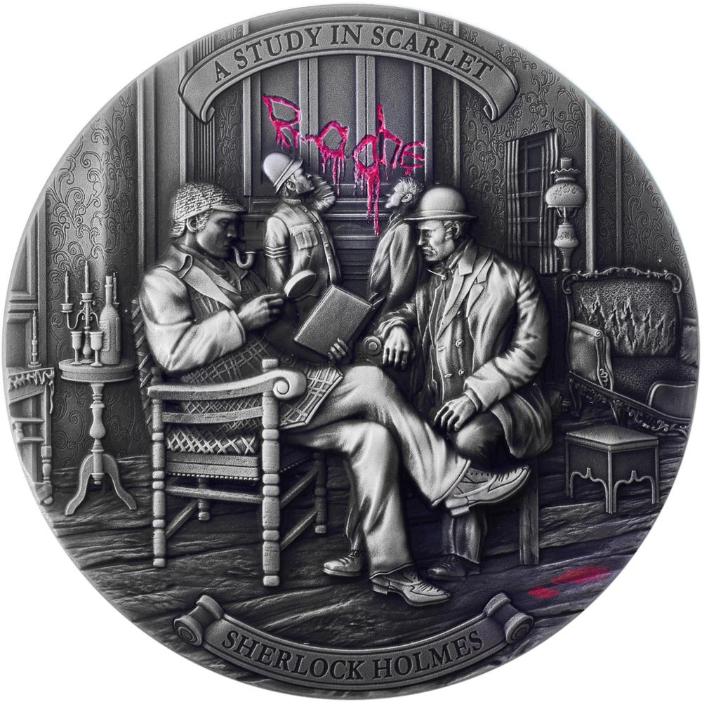 Silbermünze Niue "Sherlock Holmes. Etude in Crimson" 2024 g, 62,2 g. reines Silber (0,999 Proof)