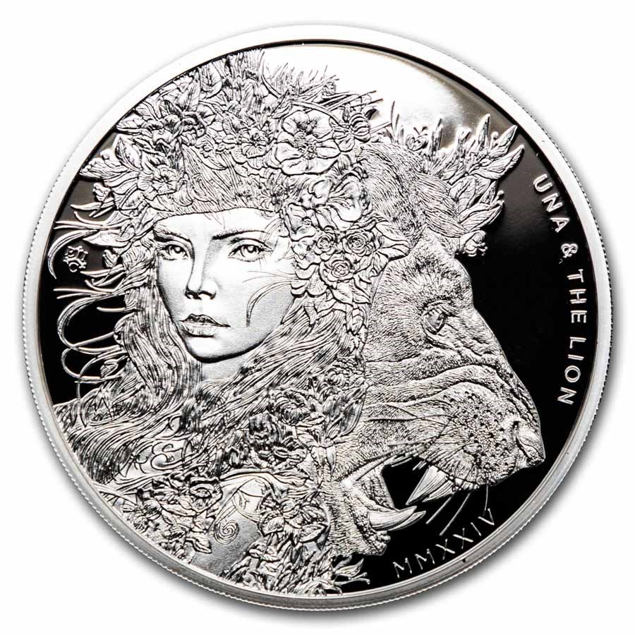 St. Helena Silbermünze "Una und der Löwe" (Proof) 2024, 31,1 g. reines Silber (0,999 Proof).
