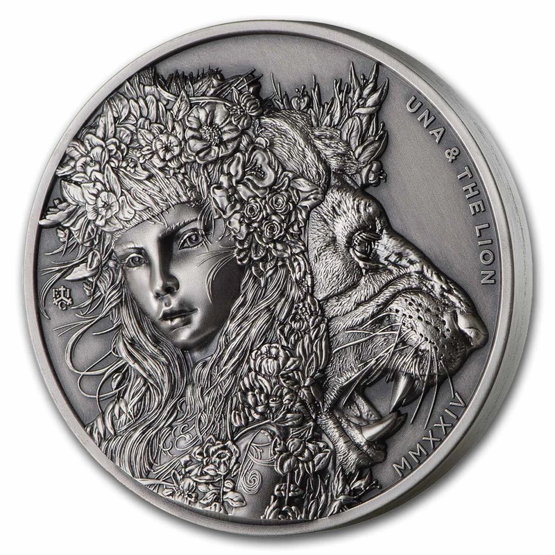 St. Helena Silbermünze "Una und der Löwe" (Proof) AN 2024, 62,2 g reines Silber (0,999 Proof)