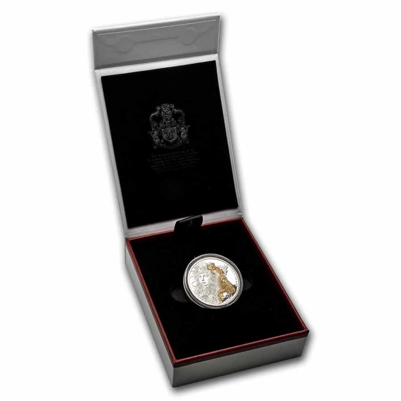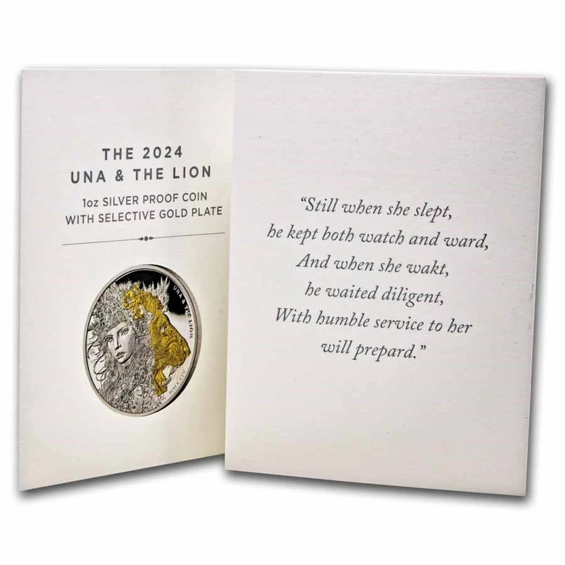 St. Helena Silbermünze "Una und der Löwe" (Proof, vergoldet) 2024, 31,1 g reines Silber (0,999 Proof).