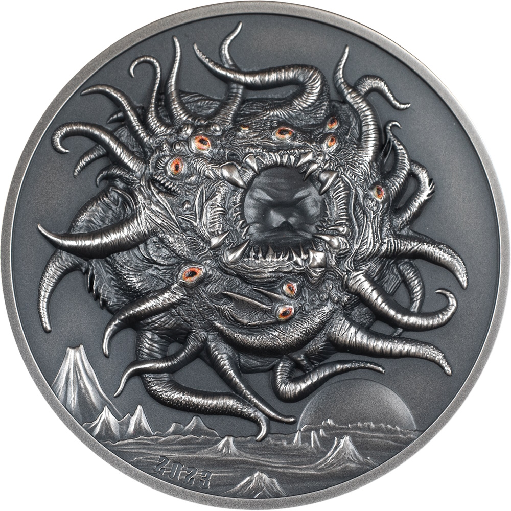 Silbermünze Palau "Howard Phillips Lovecraft: AZATHOTH" 2023, 93,3g, reines Silber (0,999 Proof).