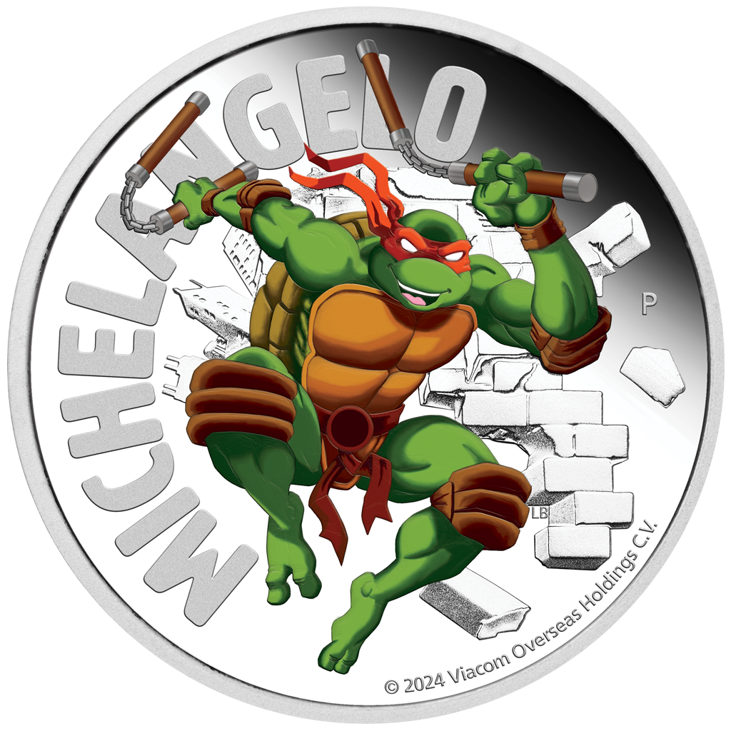 Tuvalu: Silber-Sammlermünze Teenage Mutant Ninja Turtles. Michelangelo 2024, Proof koloriert 31,1 g reines Silber (0,9999)