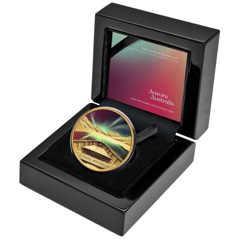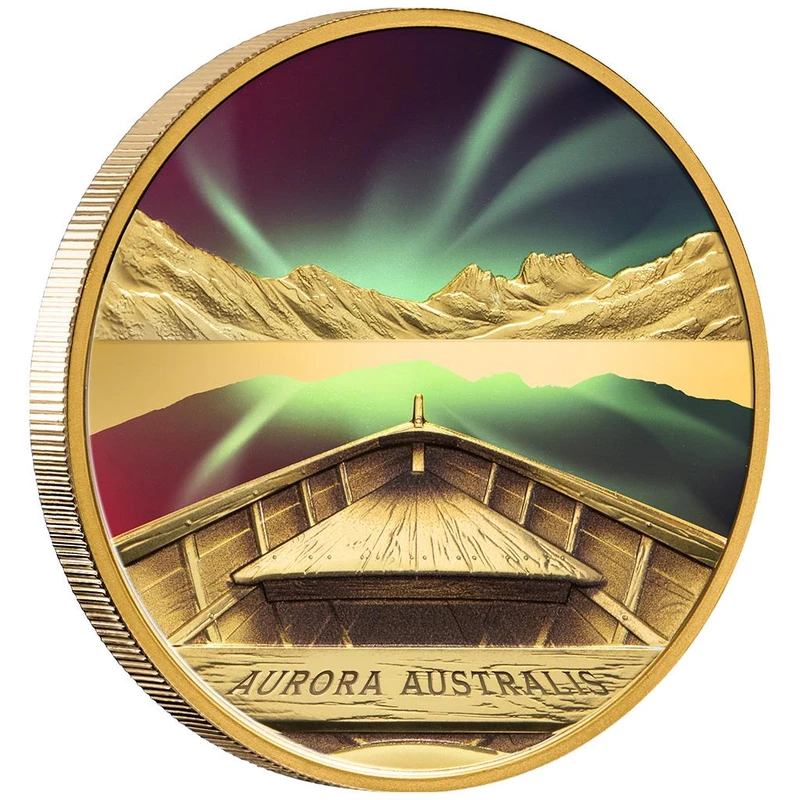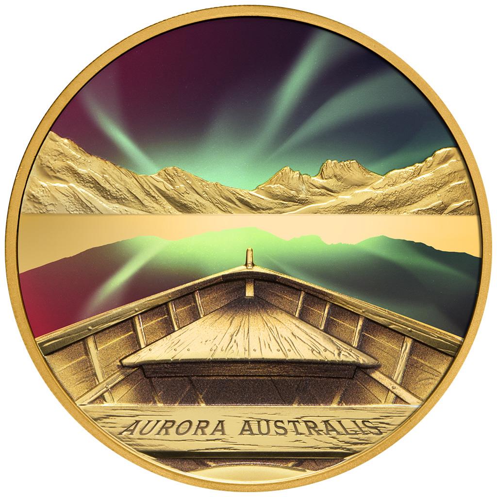 Goldmünze Tuvalu "AURORA AUSTRALIS" (Proof, farbig) 2022, 31,1g. reines Gold (0,9999).