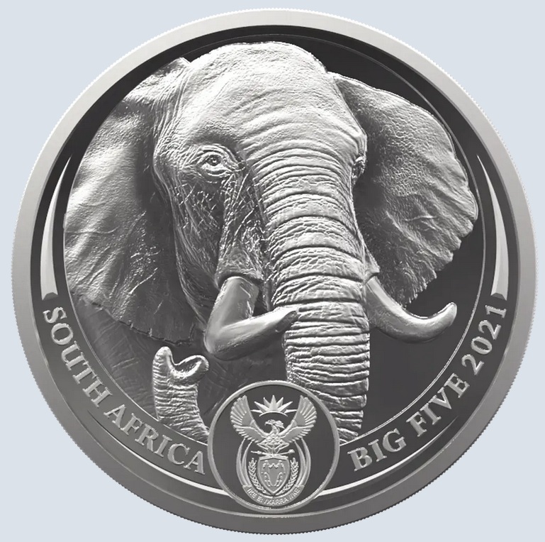 Südafrikas Platinmünze Big Five. Elefant» 2021, 31,1 g Proof