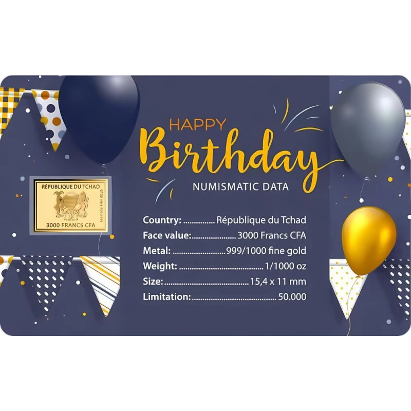 Goldmünze Chada "Happy Birthday" (Proof), 0,031 g. reines Gold (0,999 Proof)