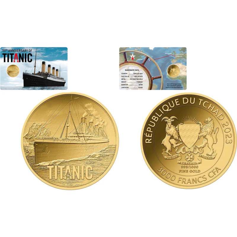 Chad's Goldmünze "Titanic" (Proof), 0,031 g. reines Gold (0,999 Proof)