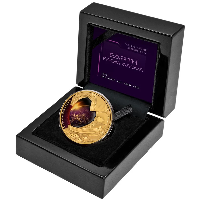Goldmünze Niue "Erde von oben" (Proof) 2022. 31,1 g. reines Gold (0,9999 Proof).